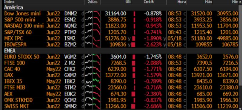 Las bajas de hoy continúan a las perdidas evidenciadas en el día de ayer, en el que el mercado tuvo su peor día desde junio de 2020 y en el que el Dow Jones perdió más de 1000 puntos en un solo día.