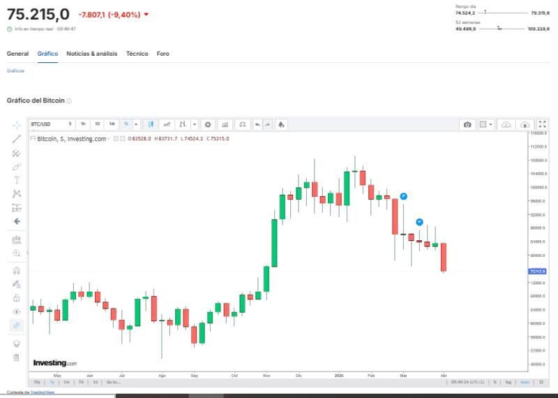 El Bitcoin, que se había mantenido en pie en la semana pasada, se desmoronó hasta la zona de u$s 75.000, el nivel más bajo desde la previa de las elecciones norteamericanas que encumbraron a Donald Trump, cuando aparecía como un líder global pro cripto, y la encumbraron a la moneda virtual hasta un pico de u$s 109.000.