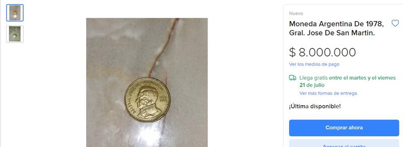 La moneda de $ 100 que se vende a $ 8.000.0000 en Mercado Libre