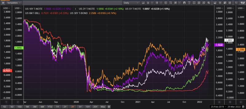 Anticipándose a una Fed más contractiva (hawkish), las tasas de los bonos americanos subieron con fuerza y se ubican en su mayor valor en dos años.
