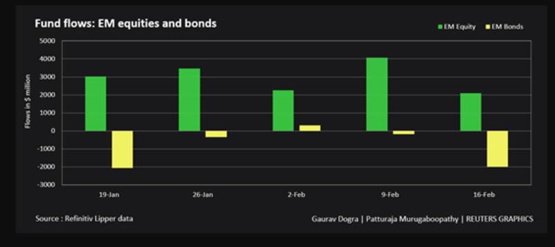 A su vez, los fondos de bonos emergentes registraron salidas de u$s 1990 millones de dólares.