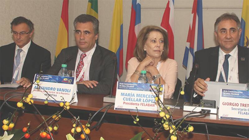 En el marco del acto de conmemoración por los 50 años de la Federación Latinoamericana de Bancos (Felaban), el vicepresidente del Banco Nación (BNA), Enrique Arceo, el titular del Banco Provincia, Gustavo Marangoni y el presidente del Banco Ciudad, Rogelio Frigerio, subrayaron que sigue siendo bajos para la región los niveles de otorgamiento de créditos y de ahorro.