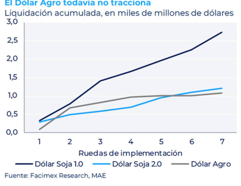 Otra de las causas por las que el BCRA decide devaluar más rápido es por el hecho de que el dólar agro no arranca ya que la liquidación sigue siendo muy baja.