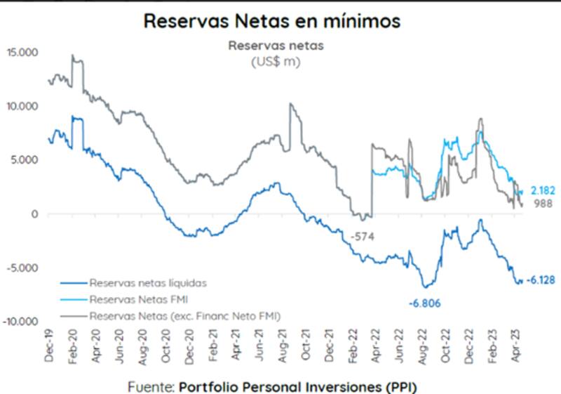 Al analizar las reservas netas según el cálculo del FMI, las mismas se ubica en u$s 2182 millones y u$s 988 millones excluyendo el cálculo de reservas netas del FMI.