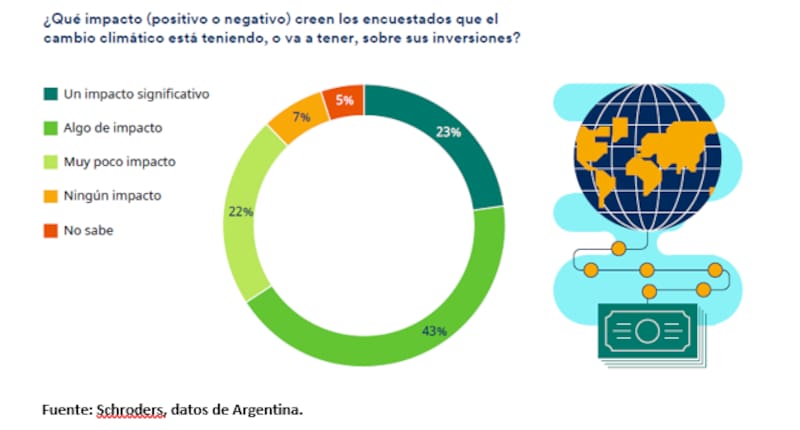 Casi tres cuartas partes de los inversores globales (71%) creen que el cambio climático provocado por el hombre es un fenómeno real que está afectando al mundo, incluyendo un 40% que cree que este impacto será "significativo". En la Argentina esos porcentajes son del 79% y 52% respectivamente.