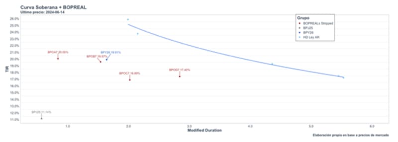"Sacando el Bopreal 25 que se puso más en línea con la curva soberana hard dollar del Tesoro, es una curva para un perfil un poco más conservador que la curva soberana. Actualmente, y contemplando el spread que hay hoy entre ambas curvas, creo que vale un poco más la pena la curva de Bopreales. En ese caso prefiero el BPY26", puntualizó.