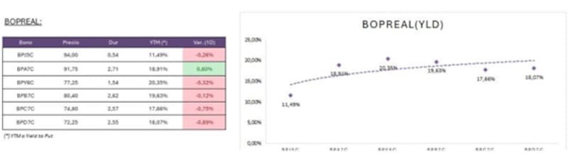 En cambio, los Bopreal muestran retornos de entre 11% y 20% a lo largo de toda la curva.