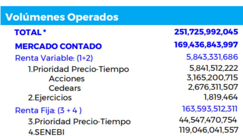 Por otra parte, el volumen operado en acciones fue inusualmente alto, en relación a lo que se suele observar: se movieron $ 3165 millones, contra $ 2676 millones de Cedear.
