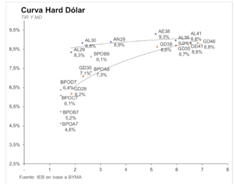 “Continuamos favoreciendo la exposición a la curva hard d ollar local, donde identificamos un mayor potencial de compresión de spreads , especialmente en AL30 frente al comportamiento reciente de los Globales de similar duration”, afirmaron.