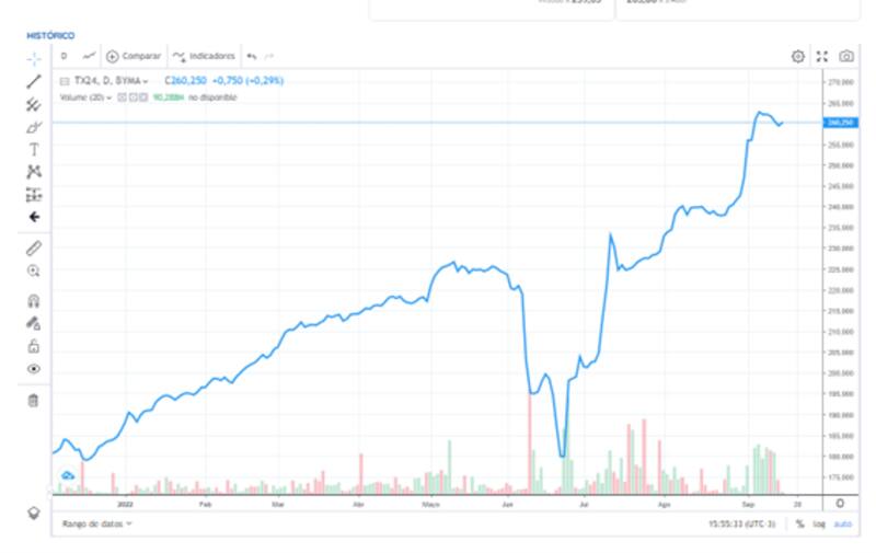 En el tramo más largo, casos como el DICP, TX26 y TX28 muestran subas de entre 40% 57% desde los mínimos de junio y están entre 4% y 6% por encima de los máximos de mayo.