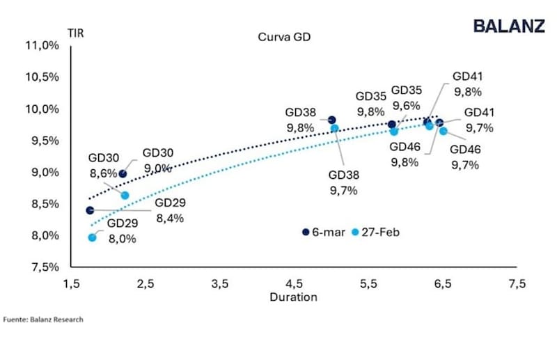 “Mirando la curva, donde seguimos viendo mayor valor es en el tramo largo. Bonos como AE38, AL35 o incluso AL41 ofrecen hoy mayor potencial de compresión de riesgo país en un escenario donde el programa económico continúe consolidándose”, afirmó.
