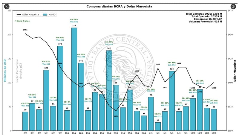 En la ultima jornada de la semana pasada se llevó u$s 45 millones, llevando al acumulado en marzo a u$s 568 millones, totalizando u$s 3298 millones en el año.