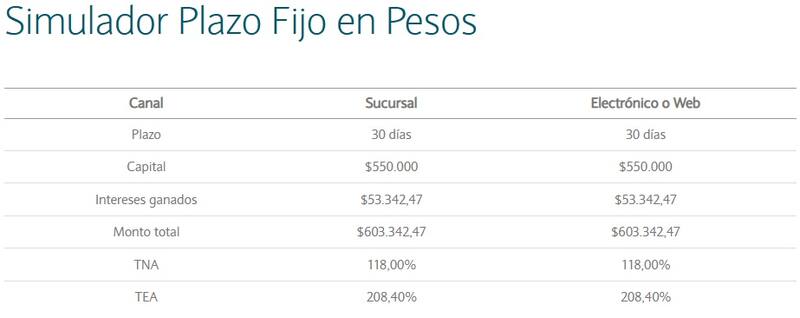 Actualmente, la Tasa Nominal Anual (TNA) es del 118%. Los plazos fijos ofrecen diversos períodos de tiempo, siendo los más comunes los de 30, 60, 90 o 180 días.