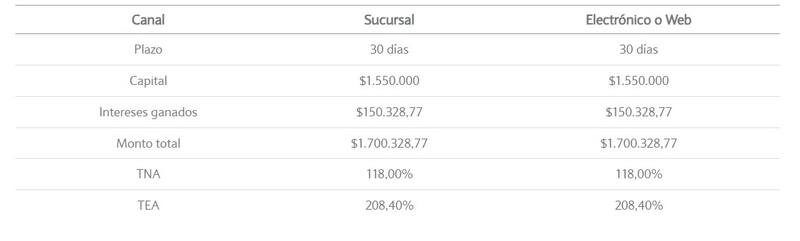 Las tasas de interés son del 118% para todas las entidades bancarias. Por lo tanto, el dinero genera el mismo rendimiento en todos los bancos.