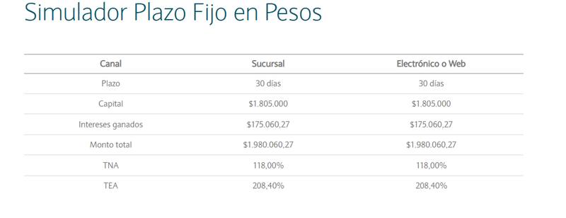 La mayoría de los bancos de Argentina operan con una tasa de interés del 118%. En ese sentido, si querés generar interés y ganar $ 175.000 en 30 días tendrás que depositar $ 1.805.000.