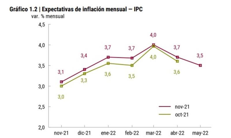 Tampoco parece que la situación vaya a revertirse hacia adelante. Es que según sugieren los pronósticos de los economistas de los principales bancos y consultoras del país, reflejados en el último REM, le inflación sería de 3,1% en noviembre (el dato oficial se conocerá el martes 14) y 3,4% en diciembre. Luego el Índice de Precios al Consumidor treparía a 3,7% mensual en enero y febrero de 2022, a 4% en marzo, a 3,7% en abril y a 3,5% en mayo.