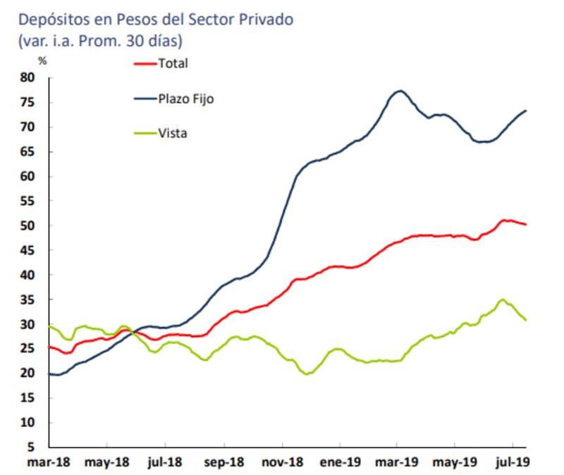 “Esta nueva operatoria contribuyó al crecimiento observado en los plazos fijos de las familias a partir de mayo. Las tasas de interés pactadas en mayo y junio se ubicaron entre 46% y 57% anual, con un promedio ponderado por monto de 55% anual, nivel sensiblemente superior al promedio de las tasas de interés de las operaciones minoristas en ese lapso (en torno a 47% anual) , detalló el IPOM.