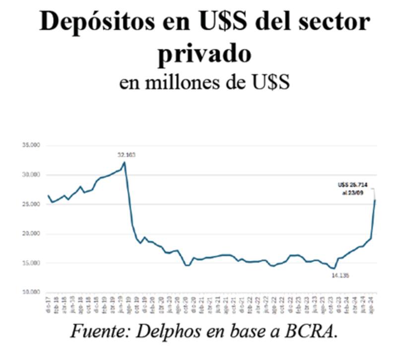 Por su parte, los analistas de Delphos Investments agregaron que el fuerte incremento de los depósitos en dólares producto del blanqueo podría abrir una nueva fuente de financiamiento para el gobierno, tales como la emisión de nuevas LETES en dólares.