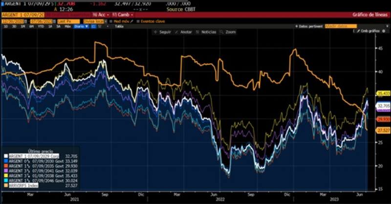 "Es complejo proyectar la dinámica de los bonos, sobre todo teniendo en cuenta la dificultad para cerrar un acuerdo con el FMI, y una dinámica de reservas que continúa empeorando, en un segundo semestre que estacionalmente suele ser malo para la misma. Sin embargo, no descartamos que la suba de los bonos pueda continuar, no tanto por los fundamentos de corto plazo, sino anticipándose a un cambio político en las próximas elecciones", comentó.
