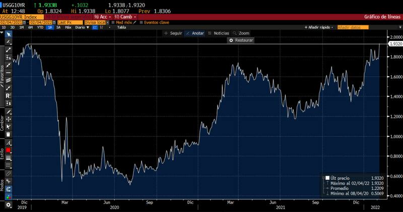 Así, la tasa a 10 años del bono del tesoro americano subió a 1,93%, su mayor valor desde el inicio de la pandemia.