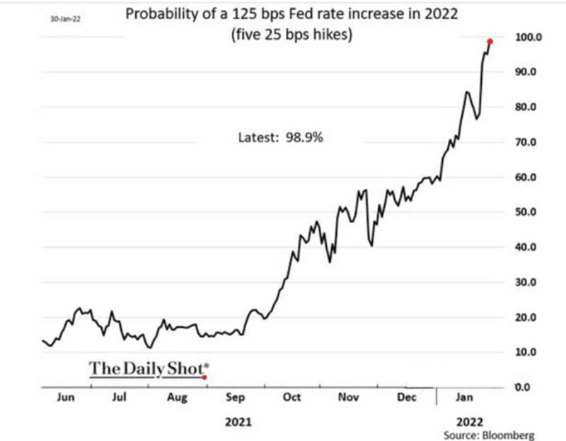 La semana pasada, los economistas del banco de inversión estadounidense Goldman Sachs pronosticaron que la Reserva Federal aumentará las tasas de interés cinco veces en 2022. Es un incremento más que el que los analistas de la firma proyectaban a principios de enero.