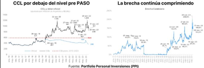 Los analistas de Portfolio Personal Inversiones (PPI), agregaron que el desplome del CCL se explicaría tanto por la eliminación del escenario de dolarización con la renuncia de Ocampo a la presidencia del BCRA como por la extraordinaria liquidación de los exportadores bajo el Programa de Incremento Exportador (PIE) 50/50%.