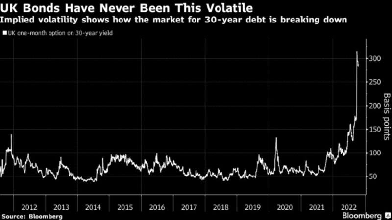 Así, la volatilidad en los bonos del Tesoro de Reino Unido alcanzó máximos históricos.
