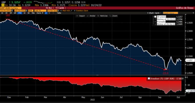 La libra colapsó cerca de 9% en los siguientes días a los que asumió Truss y que anunció su plan económico e intento de bajar impuestos.
