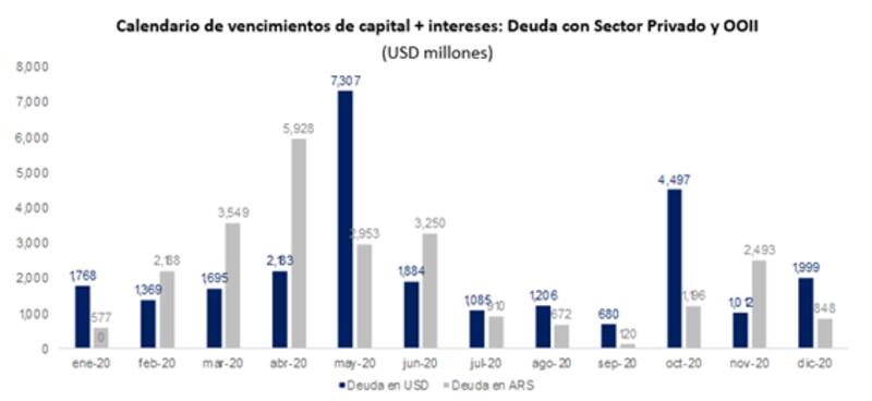 “Si sumamos diciembre al cálculo, el total de pagos al sector privado suma poco más de u$s 31.350 millones en los 13 meses que hay a fines del 2020. Y hasta abril, puntualmente, el nuevo Gobierno deberá hacer frente a un 48% de ese total , comentaron desde PPI.