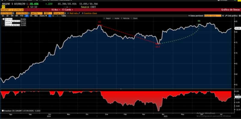 "Con un horizonte de inversión hasta fin de año, la convergencia a una curva como El Salvador vería a títulos 2035 y 2041 con subas cercanas a +30% en moneda dura, mientras que alcanzar rendimientos como los de Brasil ampliaría el retorno a niveles de aproximadamente +47% y +50%", dijo Meroi.