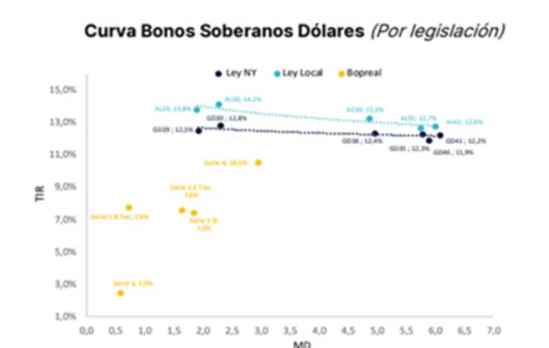 Por su parte, los bonos de ley local rinden 14% en tamo corto y entre 12,7% y 13,3% en el tramo medio y largo.