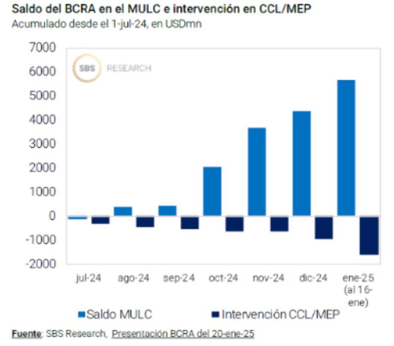 La autoridad monetaria explicitó en su momento que había intervenido en CCL/MEP con u$s619 millones hasta la mitad de enero. También dijo que había volcado unos u$s325 millones en diciembre, tras la nula intervención de noviembre.