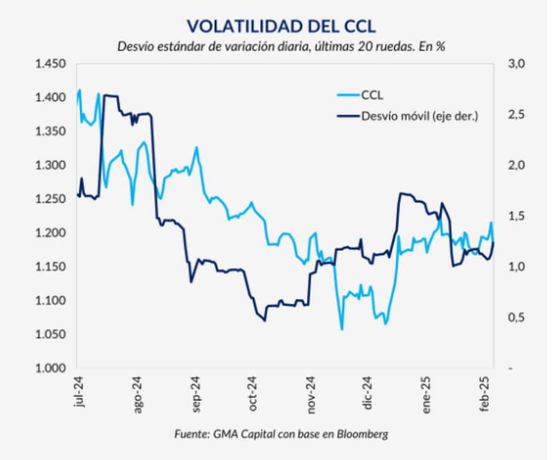 La volatilidad cambiaria se vio incrementada en las últimas semanas, en particular, desde mediados de diciembre. A partir de ese momento, el dólar financiero pasó de $1.050 a los $1.200 actuales. En ese periodo, el BCRA se muestra más activo en contener el tipo de cambio.