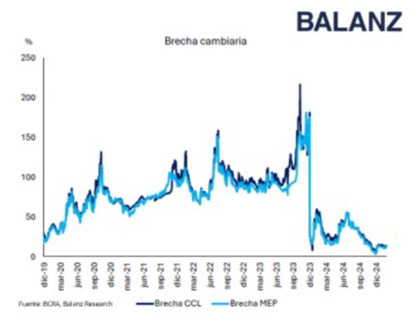 "El BCRA está comprando dólares en el mercado oficial y luego utiliza una pequeña parte para intervenir, vendiendo en el mercado financiero. Así, absorbe pesos por la diferencia de brecha. Además, con la baja de retenciones es de esperar que el agro liquide fuertemente, y con la estrategia del BCRA mencionada, mantendrá estable la brecha, sosteniéndose el carry, más ahora que se redujo el ritmo del crawling peg", indicó Lozano.