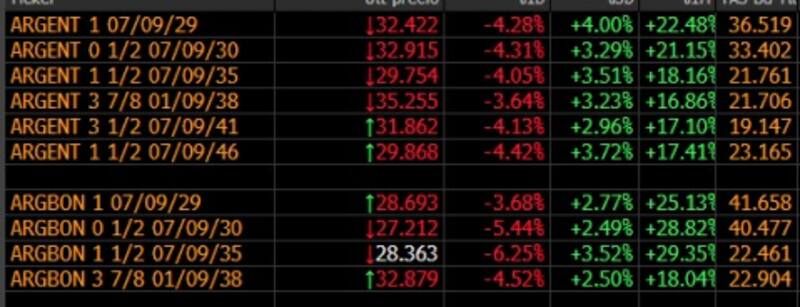 Sin embargo, en el acumulado del último mes, los bonos argentinos se dispararon entre 18% y 29%.