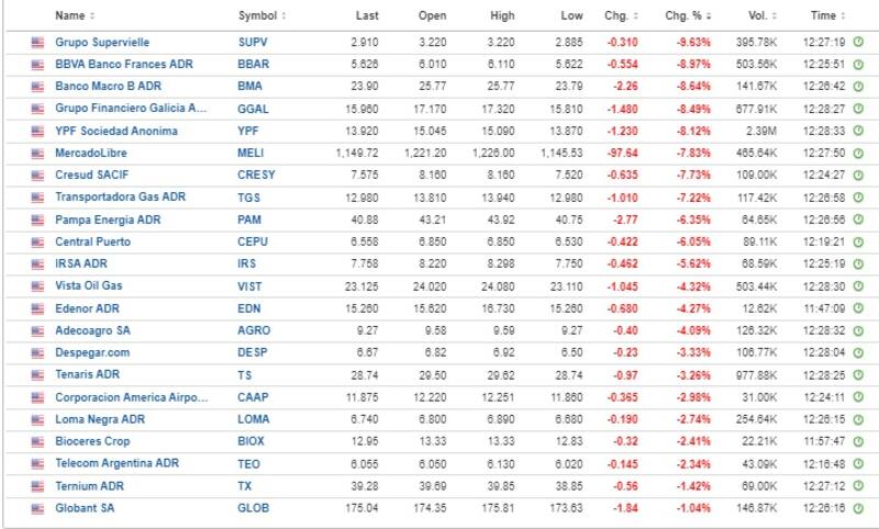 Las acciones argentinas en Wall Sreet también operan en rojo el jueves.