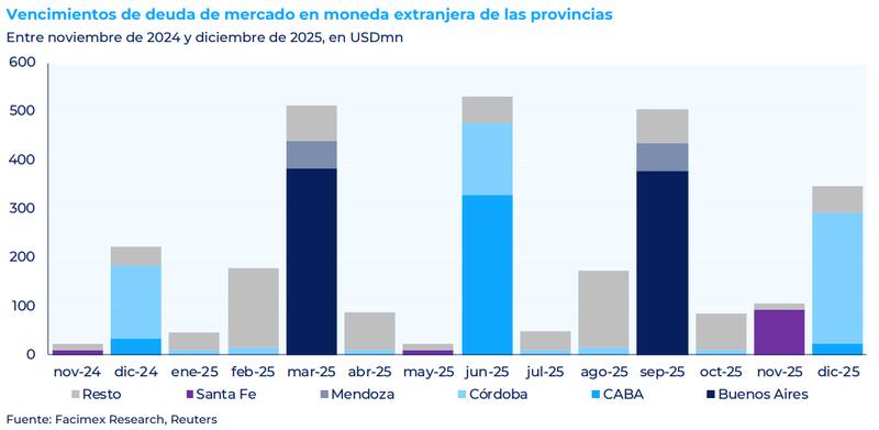El equipo de research de Facimex Valores destaca que, de concretarse, esta operación podría marcar el regreso de las provincias al mercado internacional de deuda, lo cual no sucede desde hace más cinco años. Incluso, prevé que es mucho más factible que las provincias lo hagan antes que la Nación.
