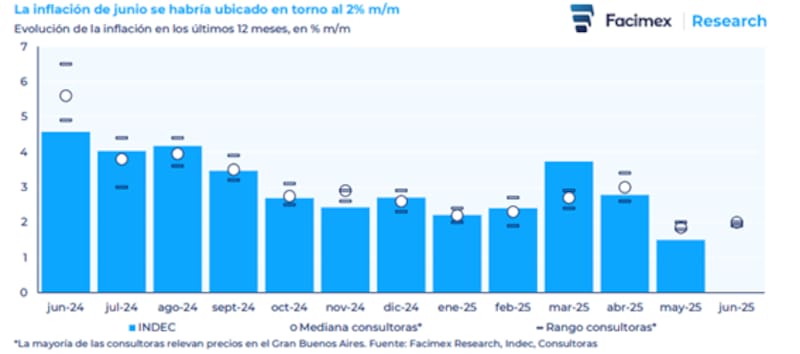 Los analistas del mercado y los datos de las consultoras están bastante alineados con obtener un dato de inflación en torno al 2% mensual.
