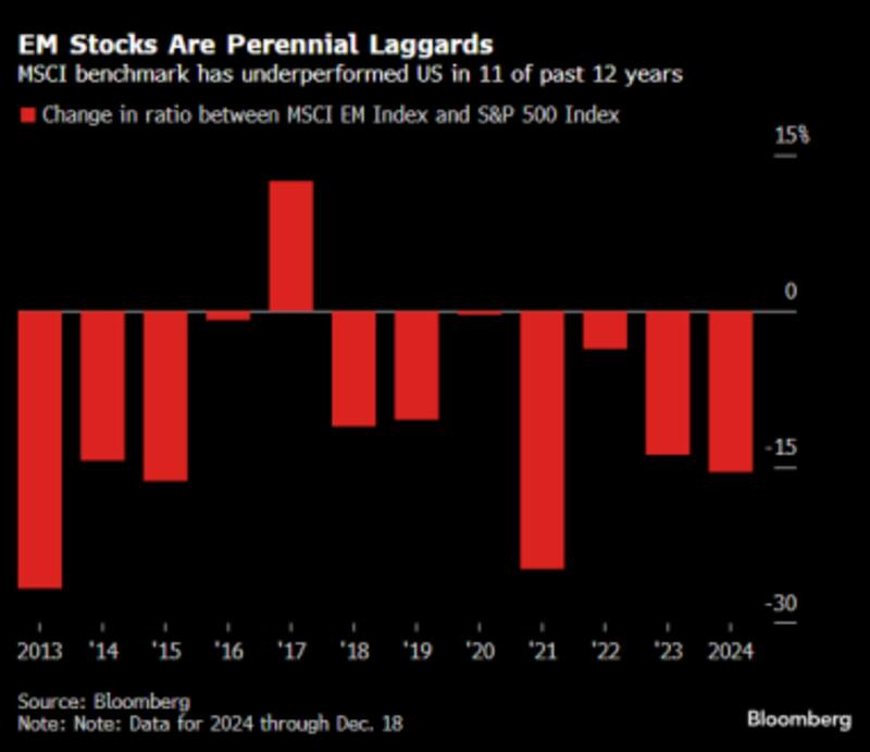Desde las acciones hasta las divisas y los bonos, 2024 fue otro año en el que la clase de activos no estuvo a la altura de sus promesas ni de las expectativas de los gestores de dinero encargados de promover activos más riesgosos en mercados más pequeños. Para algunos, como el fondo de cobertura con sede en Londres Broad Reach Investment Management, las mejores oportunidades en los mercados emergentes surgen al apostar contra ellos.
