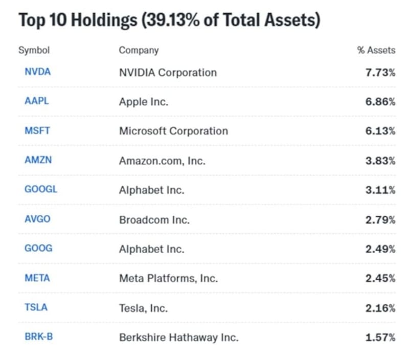 Entrando en nombres puntuales, Nvidia explica el 7,7% del índice, mientras que Apple representa el 6,86%, seguida de Microsoft que es el 6,1% del índice.