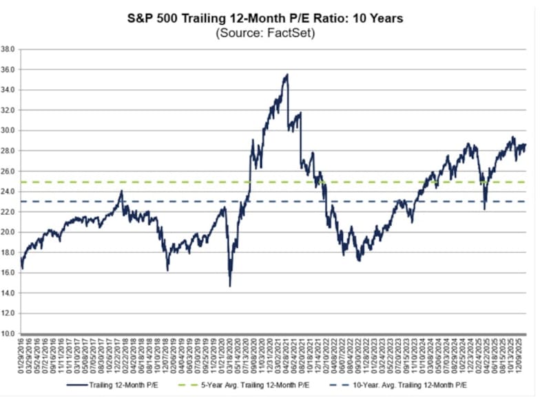 De hecho, cuando se compara el actual nivel de valuación del índice, el mismo se ubica lejos de su promedio de 5 años de 20 veces ganancias y más lejos aún de su promedio de 10 años de 18,5 veces ganancias, según datos de FactSet.