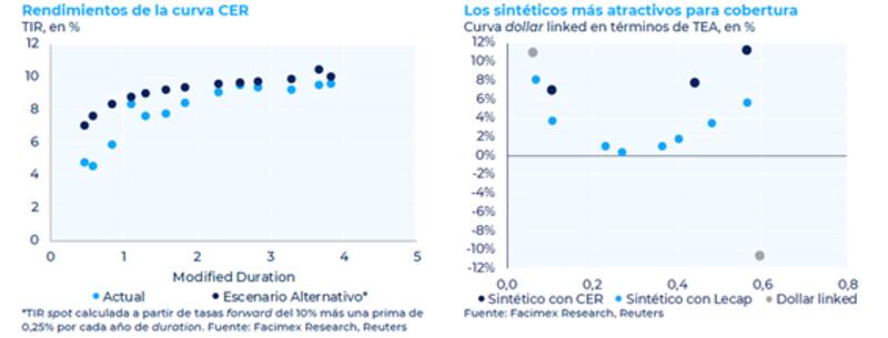 Finalmente, y en cuanto a las inversiones con los pesos, desde Research Mariva prefieren una estrategia de igual ponderación entre el extremo corto de los bonos CER y las LECAP.