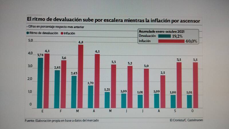 De esta manera, el ancla cambiaria comenzó a quedar rezagada de una inflación que ya acumula niveles de 40% en el año y que solo en agosto logró perforar el piso del 3% (se situó en 2,5%).