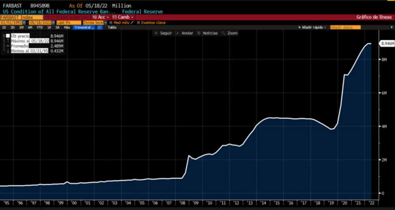 La Fed también anunció la reducción de su hoja de balance, la cual paso de u$s 3,9 billones a u$s 9 billones desde la pandemia hasta la actualidad.