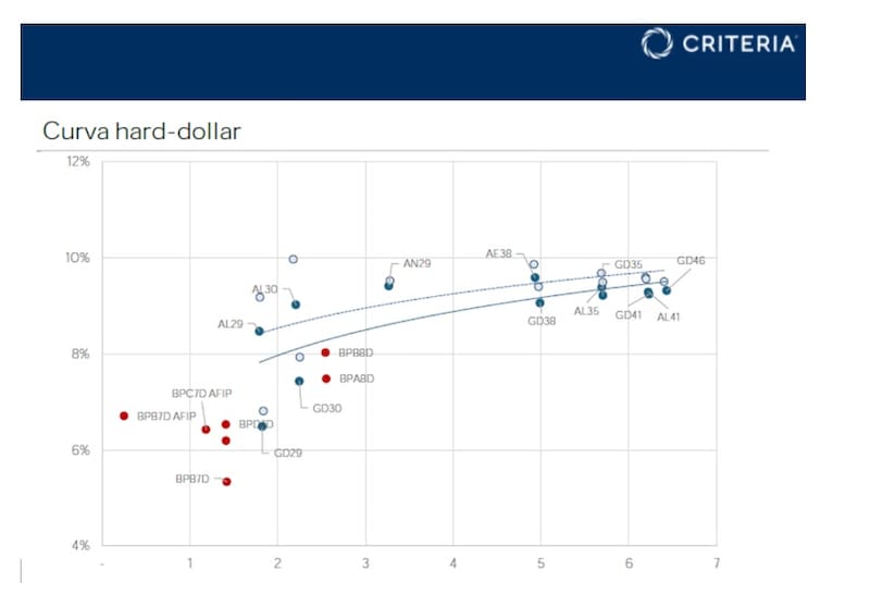 “Continuamos favoreciendo la exposición a la curva hard d ollar local, donde identificamos un mayor potencial de compresión de spreads , especialmente en AL30 frente al comportamiento reciente de los Globales de similar duration”, dijeron.