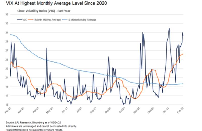 Desde la consultora internacional LPL Research advierten que esperaban un regreso de la volatilidad luego de un 2021 con baja volatilidad, aunque no esperaban que el rally se dé a partir del inicio de una guerra entre Rusia y Ucrania.