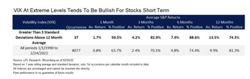 "El precio de cierre del VIX durante los últimos dos días ha estado cerca de 3 desviaciones estándar por encima del promedio de 12 meses. Al igual que muchas otras medidas del sentimiento del mercado que monitoreamos, los niveles extremos de volatilidad históricamente han tenido el potencial de ser señales contrarias cuando se trata de predecir los precios de las acciones a corto plazo", dijeron desde LPL Research.