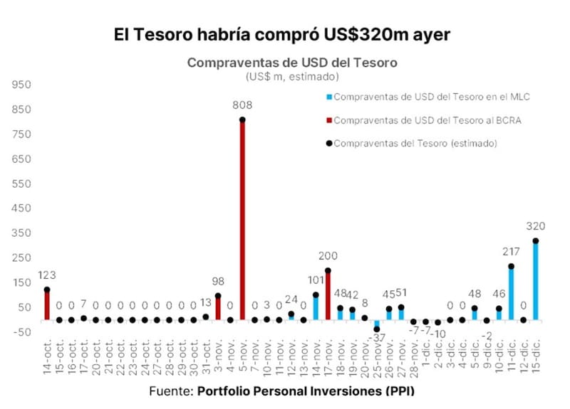 A su vez, mirando la película de los últimos días, el Tesoro inició un proceso de compras sostenidas desde el 12 de noviembre, que se intensificó en las últimas semanas.