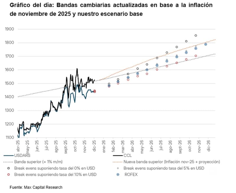 Dado que la inflación de noviembre fue 2,5%, el nuevo techo de la banda comenzará a correr a dicha velocidad, dando certidumbre sobre el nuevo ritmo de la banda superior.