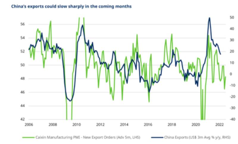 "En primer lugar, las exportaciones de manufacturas, que han sido el motor clave del crecimiento durante los dos últimos años, parecen encaminadas a desacelerarse. El panorama económico mundial parece cada vez más estanflacionario. Esto sugiere que el aumento de la inflación, en particular para productos básicos como alimentos y energía, comenzará a sofocar la demanda de bienes manufacturados", dijo Rees.